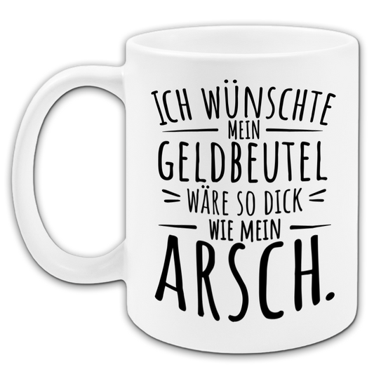 "Ich wünschte mein Geldbeutel wäre so dick wie mein Arsch" Tasse