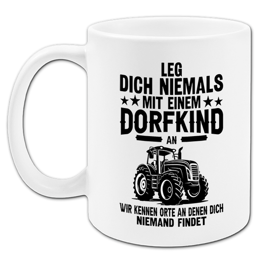 "Leg dich niemals mit einem Dorfkind an" Tasse