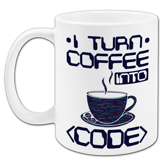 "I turn coffee into code" Tasse