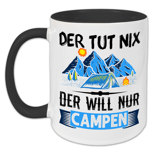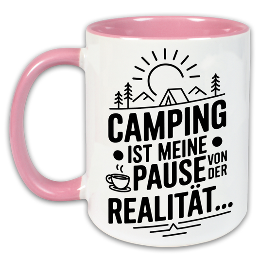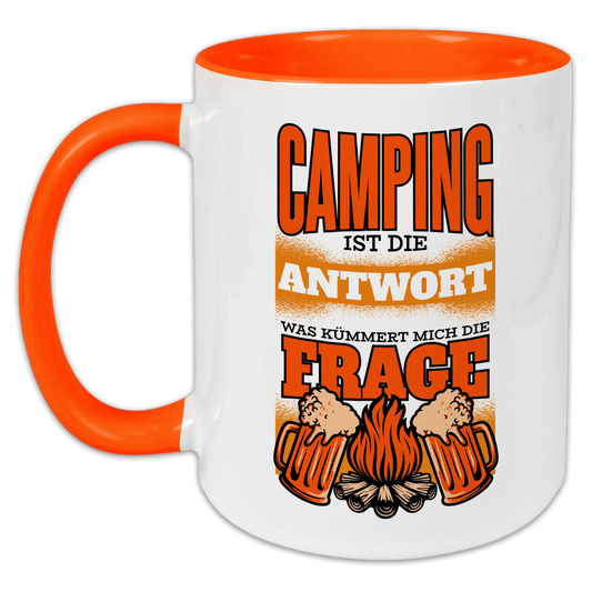 "Camping ist die Antwort, was kümmert mich die Frage" Tasse