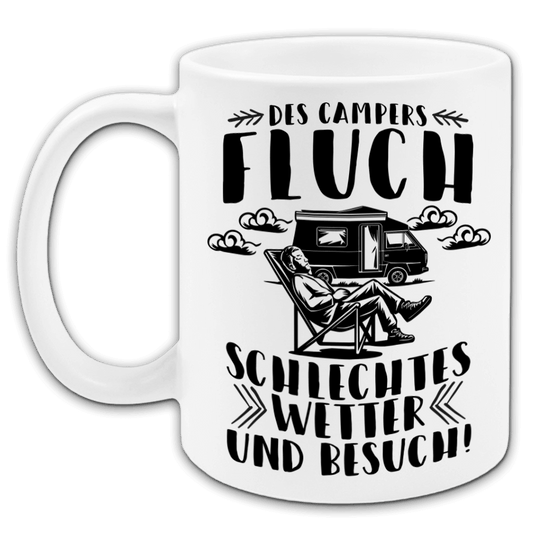 "Des Campers Fluch - Schlechtes Wetter und Besuch" Tasse